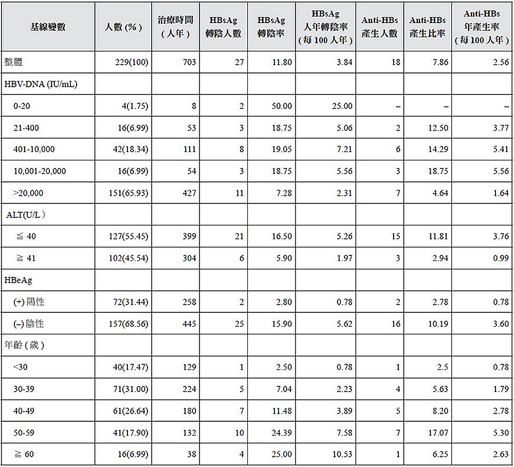 一、 | B型肝炎是西醫學的現代疾病。歷代醫家留下的治療肝膽病的良方,以及現代中醫的驗方,用來治療慢性B型肝炎的安全性與效果如何?二個極端,一個是全盤否定,另一個則是認為好的不得了! 針對傳統中醫藥(Traditional Chinese Medicine, TCM)治療慢性B型肝炎與帶原能否達致HBsAg血清轉陰的治療終點的問題,符合多中心、隨機、雙盲、安慰劑控制條件的臨床試驗,且在國際期刊上發表過的研究非常稀少,稱得上是鳳毛麟角。為瞭解實際狀況,本中心特地整理自2001.1.1至2014.12.31計14年期間,共收治了1,478個肝炎病患,其中符合規律用藥與追蹤檢驗的127個慢性B型肝炎帶原者與102個慢性B型肝炎病患,進行回顧性研究,結果如下表: 上表清楚顯示TCM治療慢性B型肝炎與帶原有效,且能達致HBsAg血清轉陰的治療終點: