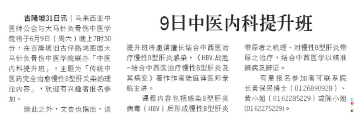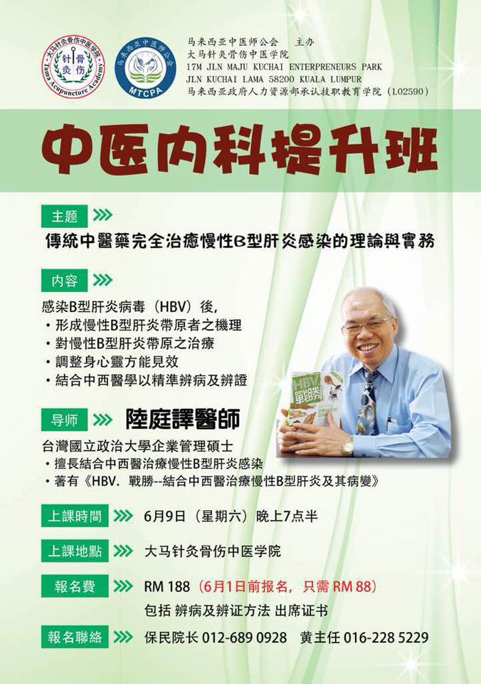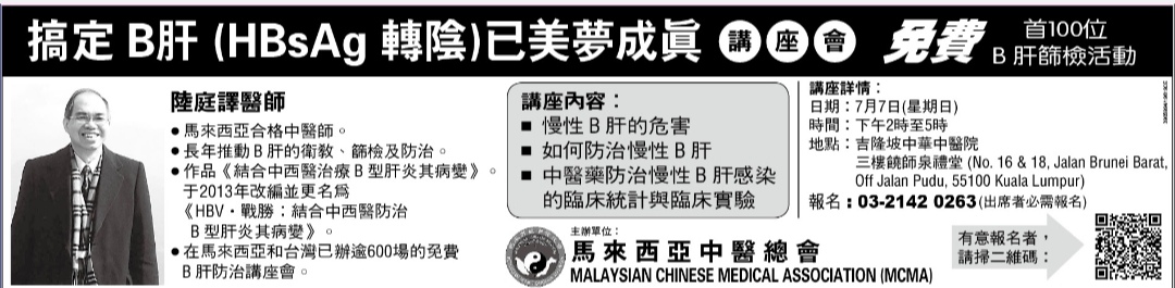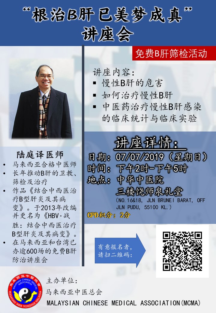 陸庭譯醫師並於2019年7月7日與馬來西亞中醫總會聯合舉辦「根治B肝已美夢成真」講座會及肝癌與B肝免費篩檢活動,反應空前。